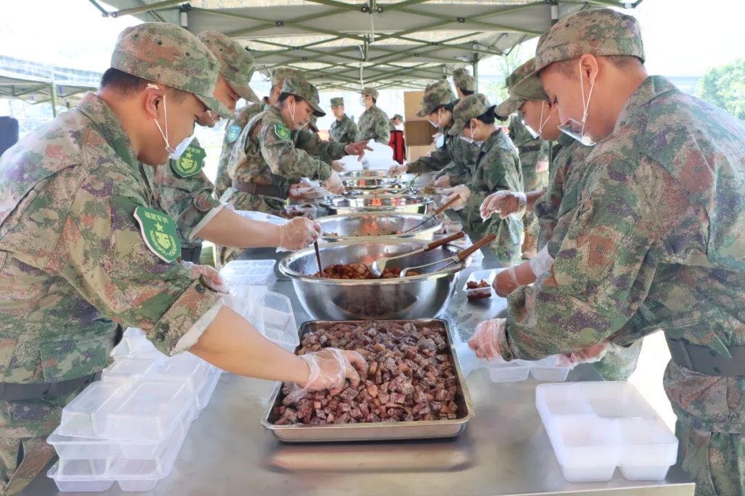 此次演练是我省退役军人事务系统和广大退役军人志愿服务队伍深入学习贯彻习近平总书记关于退役军人工作的重要论述和全国双拥模范城(县)命名大会精神的一个具体行动,旨在检验军供保障人员和退役军人志愿服务队伍“平时服务、急时应急、灾时救灾、战时应战”的意识和能力,提升军供系统野外保障能力和协同作战水平、强化退役军人志愿服务应急救援处置能力、增强公众军供保障和防灾避险意识。在区域联合野战自主军供保障演练环节,来自省军供站、泉州军供站、邵武军供站、三明军供站、永安军供站的工作人员组成联合军供保障队伍。演练模拟部队执行紧急任务途中急需饮食保障场景,各军供站闻令而动,迅速启动应急预案,从食材调配、加工烹饪到餐食分装、运输配送,各环节衔接紧密、配合默契,展现出高效的野外应急保障能力。