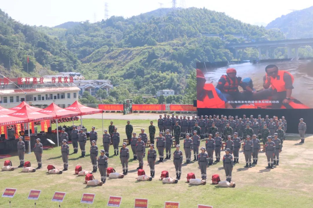 当天正值“5·12”全国防灾减灾日,三明市火箭救援队、龙岩市上杭县古田军号公益救援突击队,围绕应急救护、搜救犬搜寻、绳索救援、灾后卫生防疫、水域救援等科目展开实战化演练。队员们凭借精湛的专业技能和丰富的实战经验,在模拟灾害场景中争分夺秒开展救援行动,充分彰显了退役军人志愿服务队伍在应急救援领域的实战能力和过硬本领。