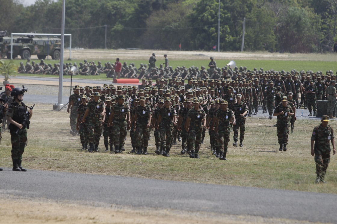 3月23日,柬埔寨军人在柬埔寨王家军某训练基地参加中柬“金龙-2023”联演。新华社发(批隆摄)