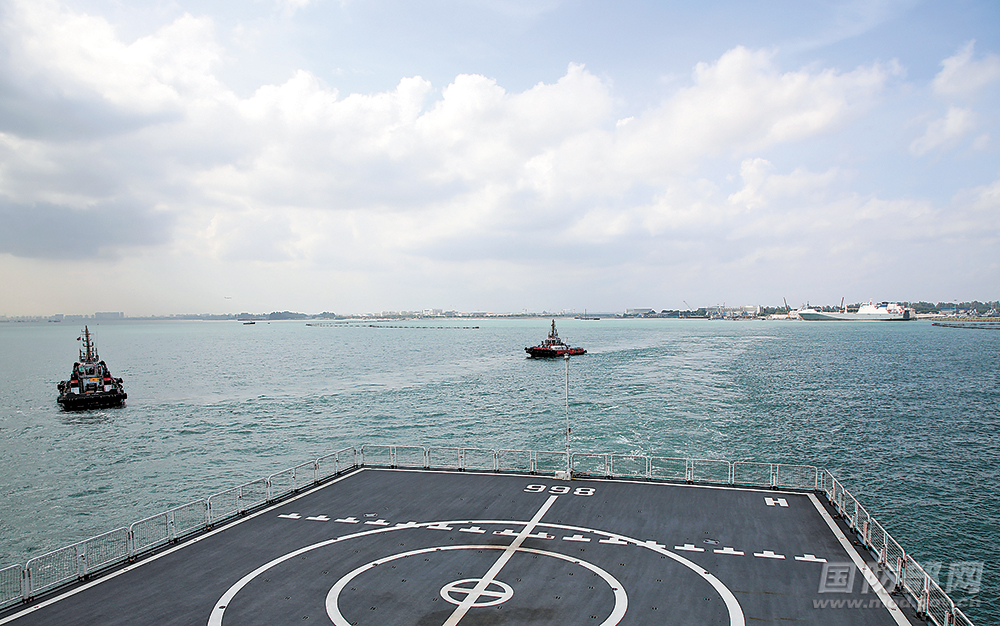 和平方舟医院船驶离新加坡樟宜海军基地,启程回国。刘志磊摄