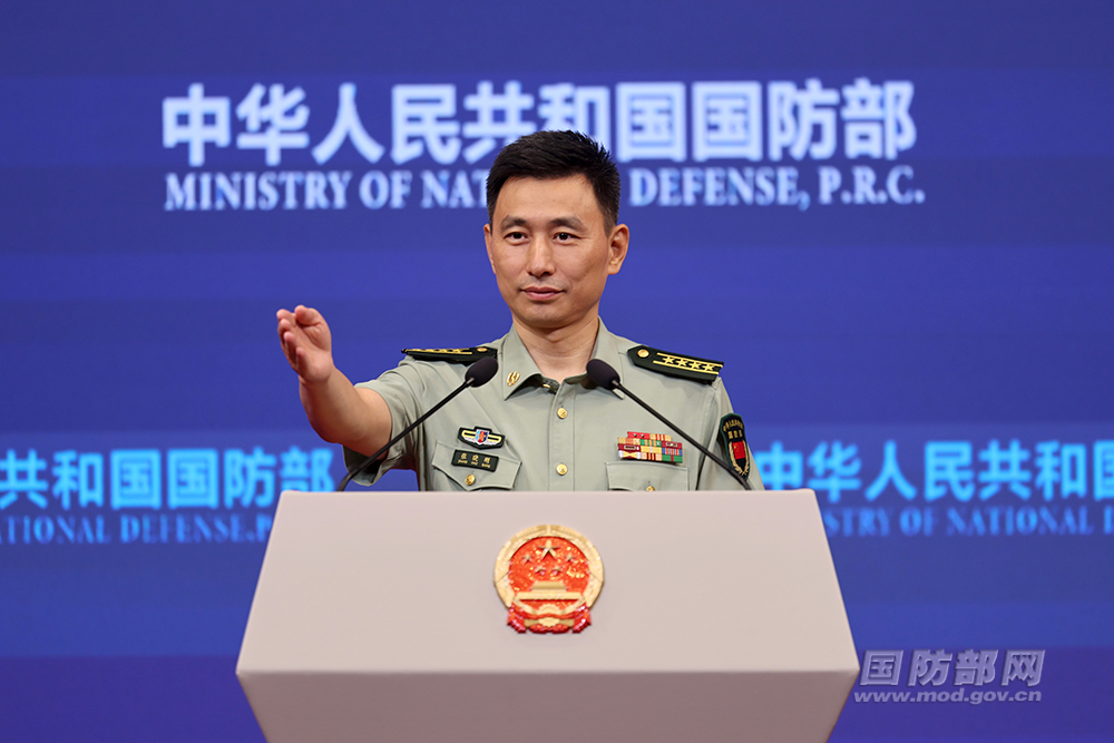 8月28日下午,国防部举行例行记者会,国防部新闻发言人张晓刚大校答记者问。 李晓伟 摄