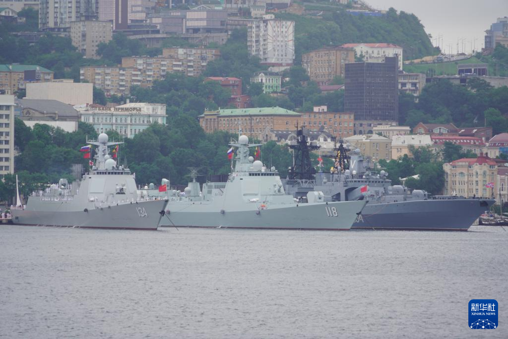 这是7月31日在俄罗斯符拉迪沃斯托克某军港拍摄的参加中俄“海上联合-2025”联合演习的中俄双方部分参演舰艇。新华社记者 李扬扬 摄