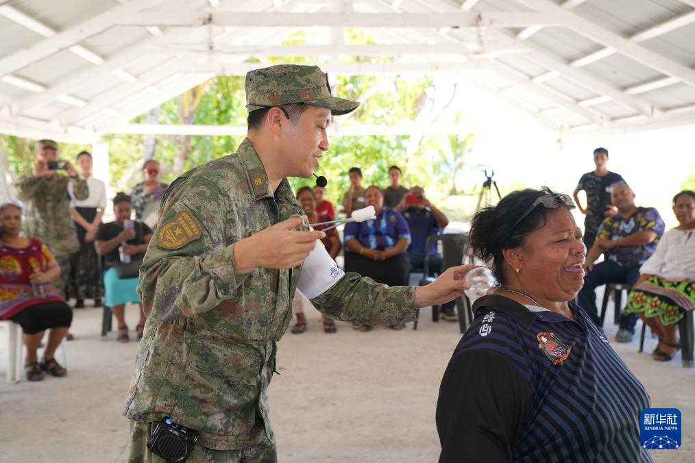 9月23日,中国海军“丝路方舟”号医院船医护人员在瑙鲁为当地民众治疗。新华社发(崔晓洋摄)