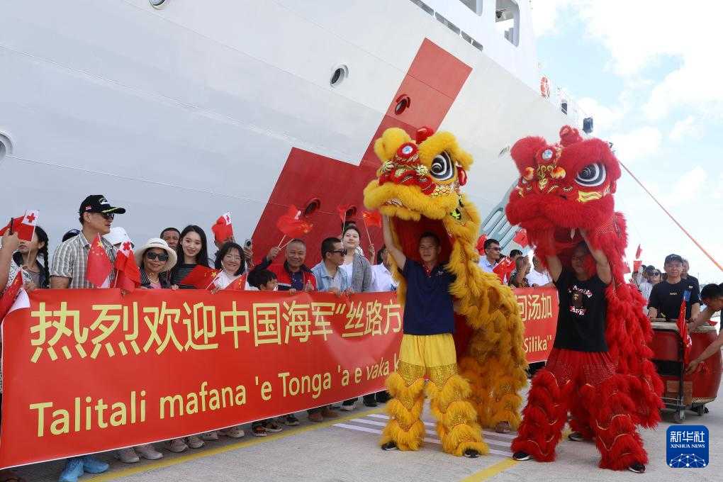10时许,在汤加海军巡逻艇引导下,“丝路方舟”号医院船悬挂中汤两国国旗,缓缓驶抵努库阿洛法港。汤加代理首相福希马洛西及军政要员、中国驻汤加大使和当地民众、华侨华人及中资机构代表等在码头迎接。汤加军乐队演奏中汤两国国歌,身着传统服饰的当地民众向中国海军官兵献上花环,表演民族舞蹈。