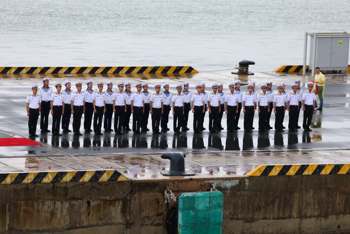 当地时间凌晨,中国海军长白山舰、郑和舰和“向前进1号”船抵达预定海域,与越南海军“丁先皇”号护卫舰汇合,组成编队驶向金兰港,10时许靠泊金兰港码头。中国驻越南大使馆工作人员、当地华侨华人代表、越南海军官兵等冒雨到码头迎接。随舰实习出访的海军工程大学、海军航空大学学员在甲板上分区列队,向欢迎人群致意。