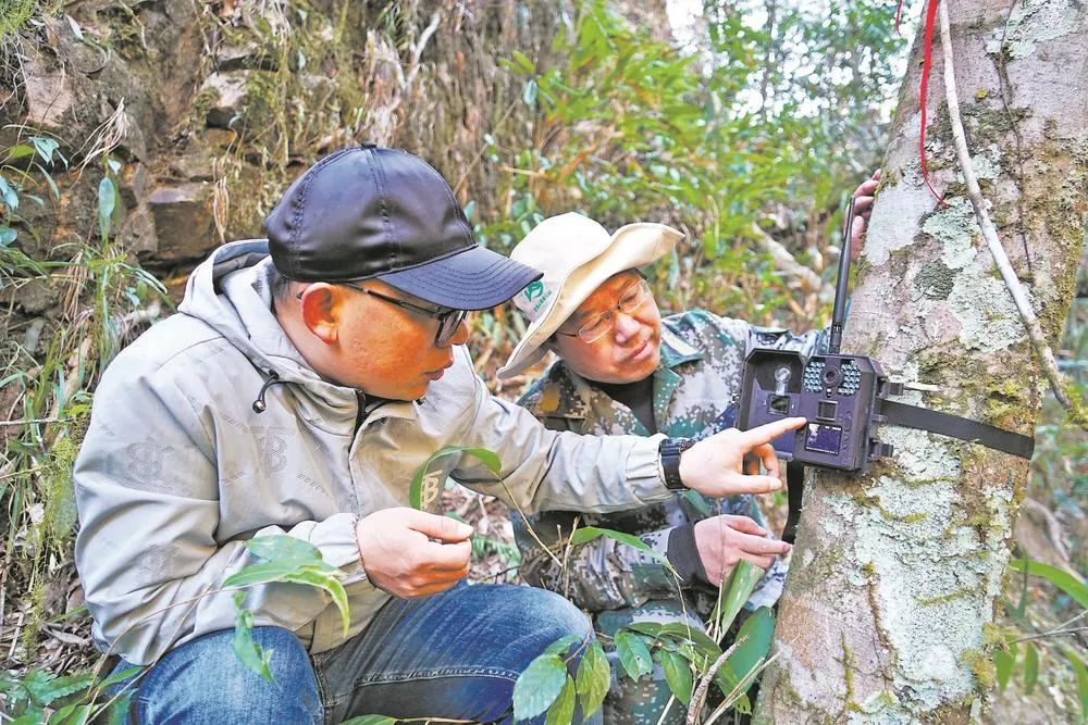 科考队员在武夷山国家公园放置红外相机。本报记者 林熙 摄