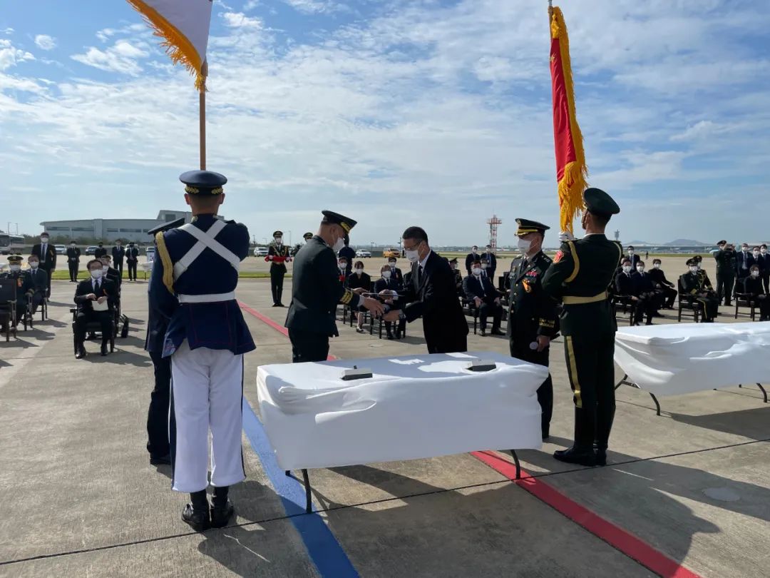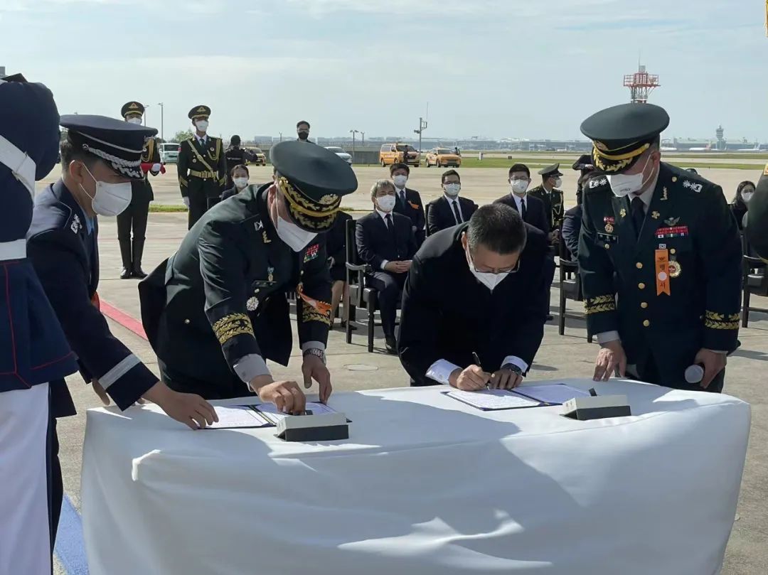 9月16日上午,中韩双方在韩国仁川国际机场共同举行在韩中国人民志愿军烈士遗骸交接仪式。中国退役军人事务部副部长常正国率中方交接代表团、韩国外交部第二次官李度勳与国防部等相关部门负责人一起出席仪式。中韩双方代表现场签署交接书,确认交接88位在韩中国人民志愿军烈士遗骸及相关遗物。中国驻韩国大使邢海明为志愿军烈士棺椁覆盖国旗,中方举行悼念仪式,中国人民解放军礼兵护送烈士棺椁登上解放军空军专机,烈士英灵将回到祖国和人民怀抱。