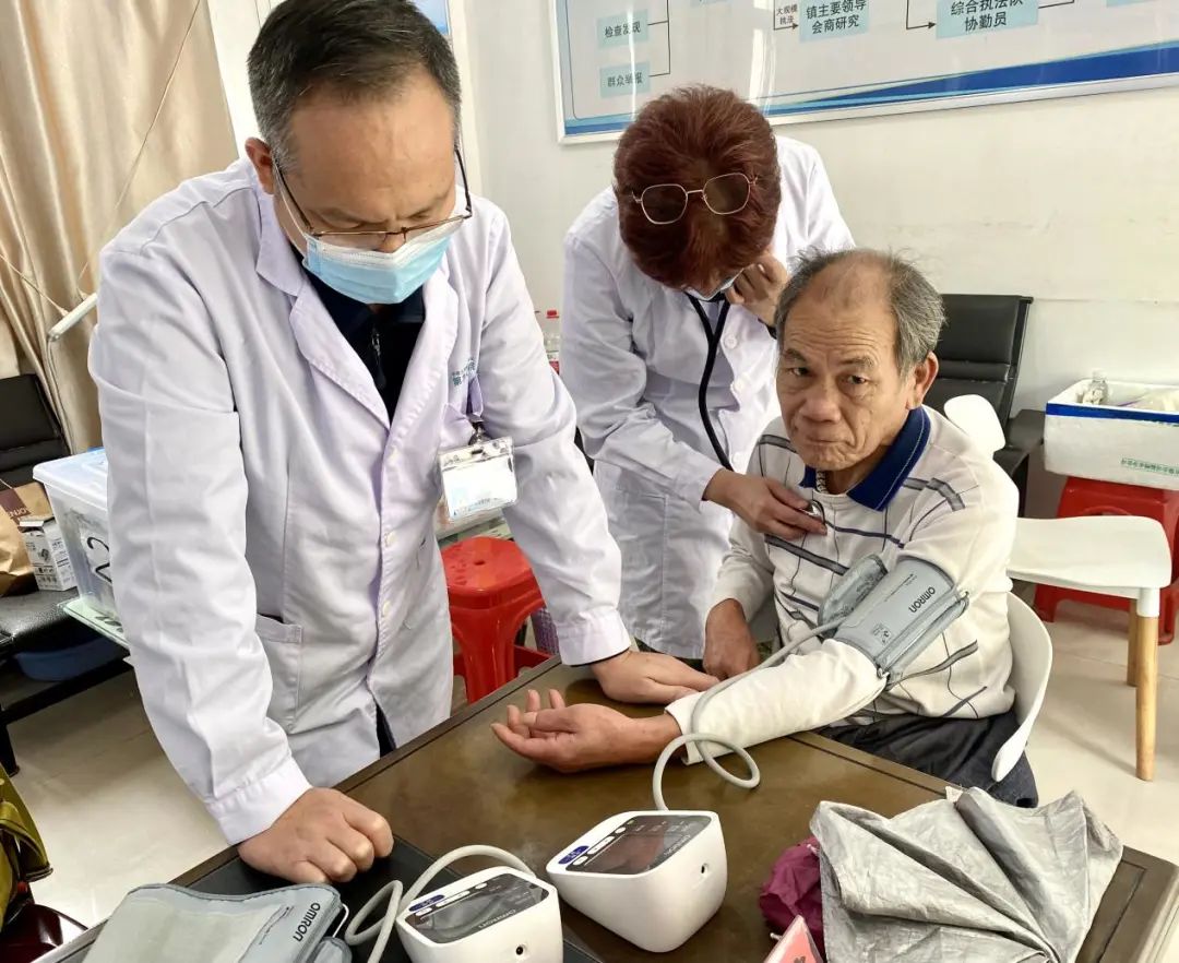 在国欢镇活动现场还出现了一个特殊情况,参加过边境战争的老兵邱章林在血压测量中,左右手臂重复监测、连换三台血压计监测都未出结果,血压计均显示监测结果无效。徐军霞、黄昌富两位医师、张凤珠护士长立刻调取了他的心电图报告单,通过现场查体、听诊问诊等会诊分析,确定是由于血压的重度升高和心脏病等多种疾病的综合作用导致,情况比较危险。由于邱章林是独自前来诊疗,并没有家人陪同,工作人员立刻通过当地退役军人服务站的负责人联络家属,并告知家属其病情的严重性。邱章林和其家属连声道谢。