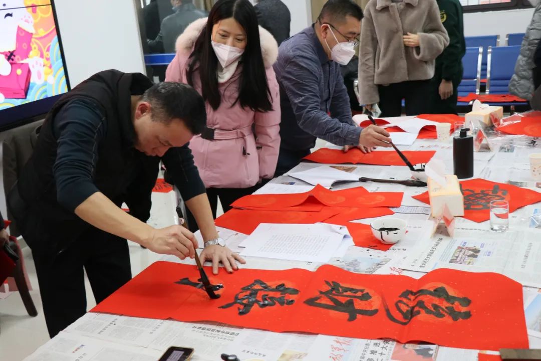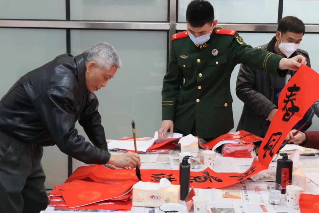 活动现场,墨香飘溢,气氛热烈。书法家们挥毫泼墨,笔走龙蛇,一张张寓意祥瑞的春联、一个个墨宝飘香的“福”字跃然纸上,传递出浓浓的年味和祝福。“卯门生紫气,兔岁报新春”“迎喜迎春迎富贵,接财接福接平安”“一帆风顺吉星到,万事如意福临门”……一幅幅春联和“福”字送到部队官兵和干部职工手上,红彤彤的春联映衬得活动现场年味十足。在欣赏书法功力与品评春联寓意间,不少干部职工也跃跃欲试,现场研习书法,感受传统文化魅力。