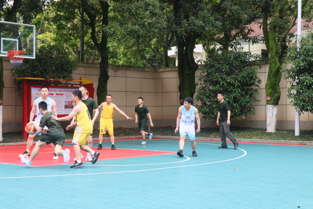 党日活动期间,举行重温入党誓词活动,与武警官兵举办篮球友谊赛。