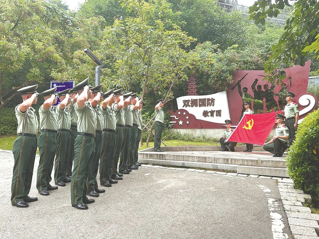 “八一”前夕,驻福州武警某部官兵走进福州“双拥国防教育”主题园,接受“爱我人民爱我军”的光荣传统教育。
