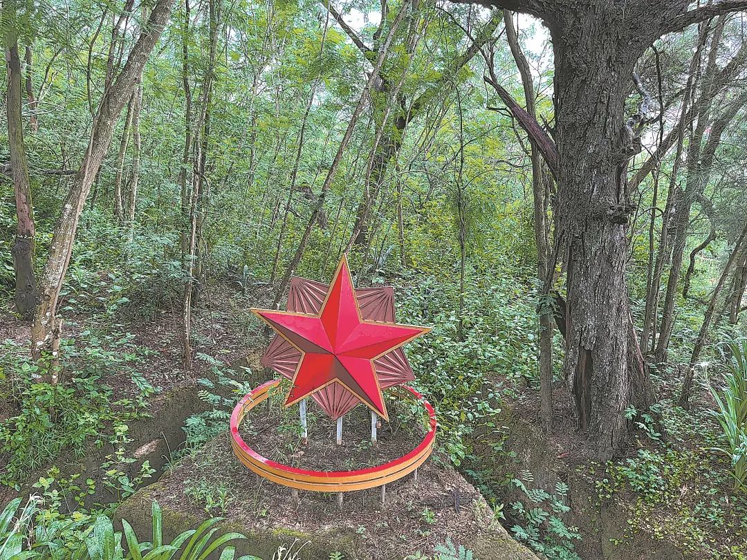 仲夏时节,东山县双拥主题公园林木葱茏、绿意正浓,丛林中火苗一般簇红的五角星在天地之间愈发夺目。