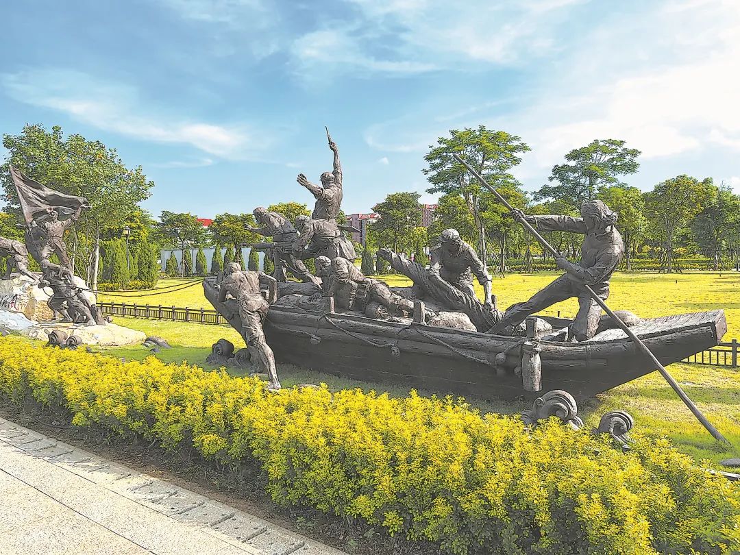 月港双拥公园以立雕形式展现龙海船工渡海作战的风采。