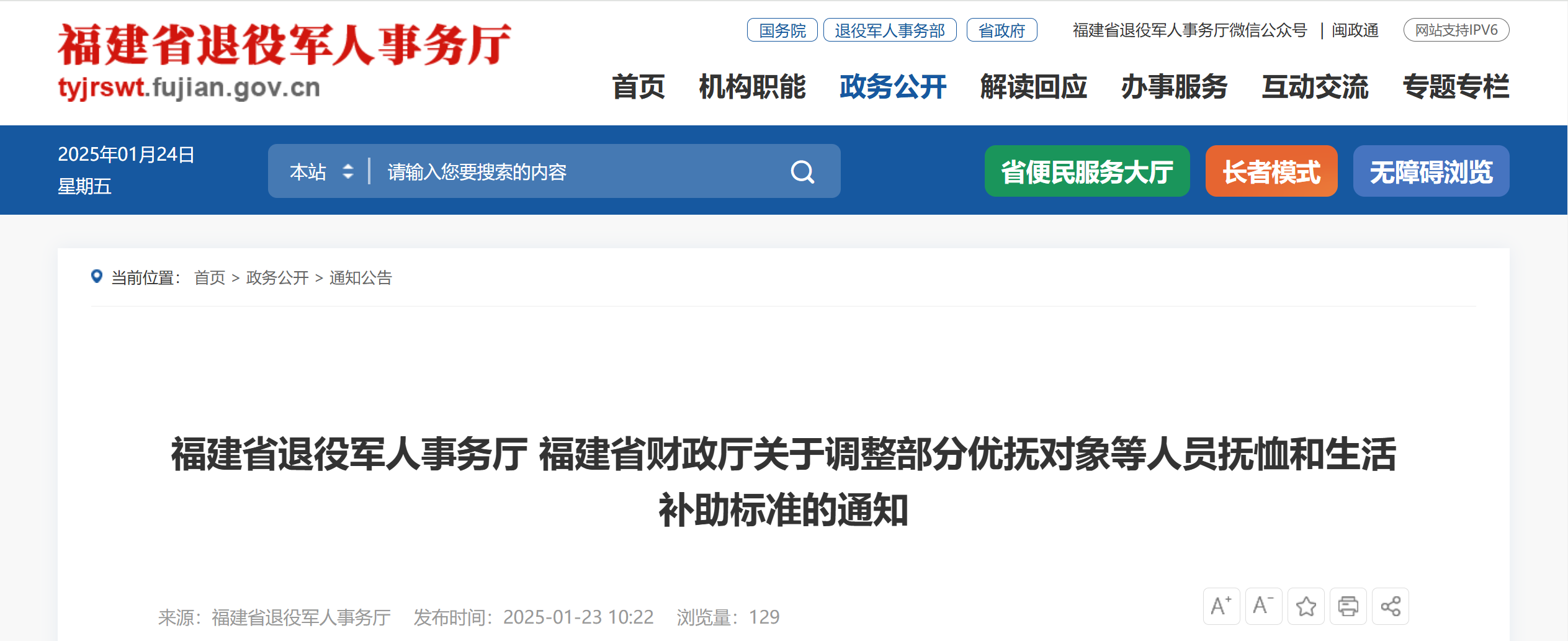 近日福建省退役军人事务厅福建省财政厅发布通知调整部分优抚对象等人员抚恤和生活补助标准来看详情——