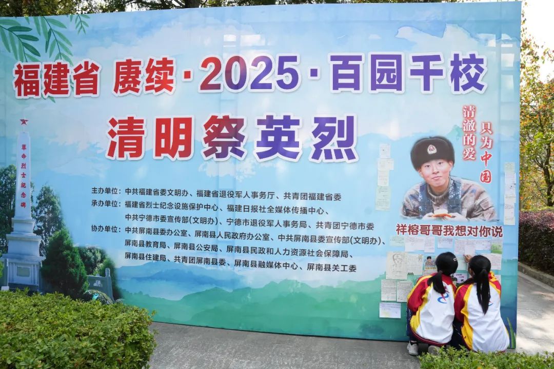 梨花风起又清明,莘莘学子谒陵行。3月27日,福建省暨宁德市“赓续·2025·百园千校清明祭英烈”活动在戍边烈士陈祥榕的故乡屏南县举行。活动由省委文明办、省退役军人事务厅、共青团福建省委主办,福建省烈士纪念设施保护中心、福建日报社全媒体传播中心,宁德市委宣传部、市退役军人事务局等单位承办。省退役军人事务厅党组成员、副厅长蔡静南,省委文明办、团省委等单位代表参加缅怀纪念活动。
