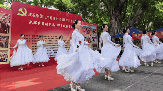 活动现场,社区举办了文艺演出活动,邀请社区群众自导自演节目。离退休同志带来歌曲《春风十万里》、舞蹈《我爱你中国》《今天是你的生日》、大合唱《映山红》《把一切献给党》以及诗朗诵《水调歌头·再访韶山》等节目,赢得阵阵掌声。书画爱好者现场创作并赠送作品给优秀党员和困难群众,深情表达了对党和祖国的热爱与祝福。现场还为两位党龄50年的老党员颁发“光荣在党50年”纪念章。老党员表示:“这枚纪念章是荣誉更是责任,我们将继续发挥余热,永远听党话、跟党走。”