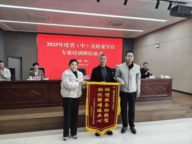在结业式上,与会领导为优秀学员颁发荣誉证书。学员代表向主办单位敬赠题有“倾情服务助转型,排忧解难暖兵心”的锦旗,表达对组织单位省退役军人事务厅贴心服务的由衷感谢;同时向承办单位省退役军人人才开发中心赠送题有“名师授业铸利剑,精准培训助启航”的锦旗,致敬高水平的教学组织与专业细致的培训保障。两面锦旗,承载的是深情厚谊,传递的是信任与肯定,更是对本次培训成果的最好见证。