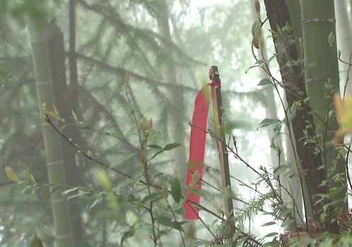 当地村民把这些无名烈士看作亲人,依照风俗,劈开竹子取“生”竹片为“碑”,并系上红飘带。