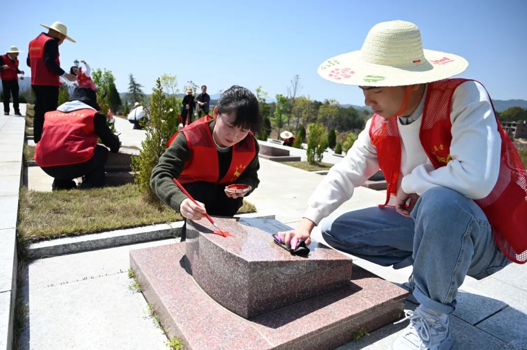 在长汀县烈士纪念园,全体党员肃立于纪念园祭奠广场,向革命烈士鞠躬、敬献鲜花,瞻仰烈士纪念碑、烈士英名墙,聆听微党课《英勇不屈的游击队长戴五嫂》的革命故事,深刻感悟革命先辈们坚定的信念与不屈的斗争精神。通过为烈士墓描红、擦拭碑体、打扫纪念园环境卫生等志愿服务活动,传承英烈精神,汲取奋进力量。