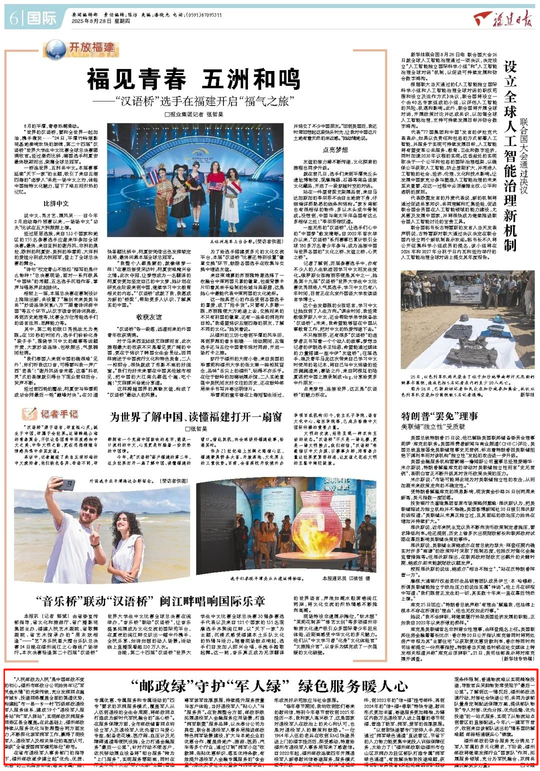 福州邮政的综合服务充分满足了军人军属的多元化需求,下阶段,福州邮政将继续发挥行业“国家队”作用,拓展服务领域,充分为军民融合、双拥共建贡献更多力量。
