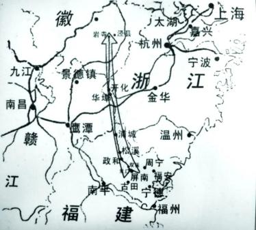 新四军六团北上抗日行军路线图