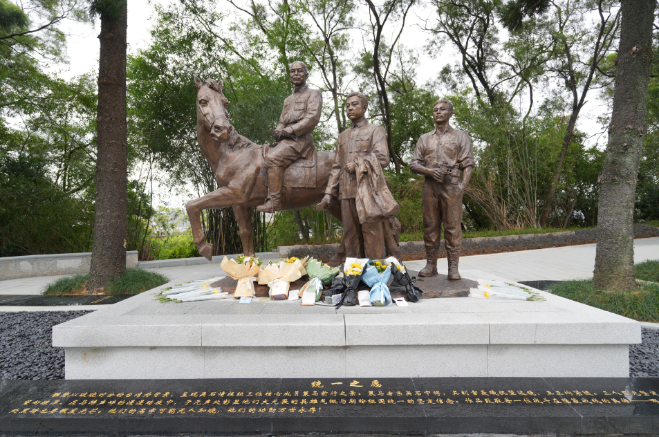 随后,全体人员转赴福州市革命英烈纪念园。在吴石、聂曦、王正钧烈士雕塑前,吴石烈士孙女吴红,朱枫烈士孙女朱容瑢、孙子朱则安,陈宝仓烈士外孙陈皓、外孙女李敏,聂曦烈士侄子黄仁晶、侄孙女黄怡然,原中央调查部部长罗青长之子罗援、罗振,司法部原部长何遂孙子何巍等先辈后人以及《沉默的荣耀》史实顾问郑立,福建省国家安全厅干警代表整齐列队,肃立默哀。