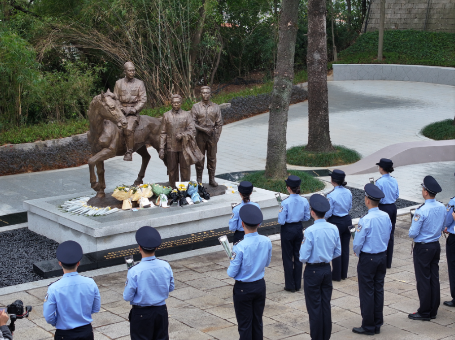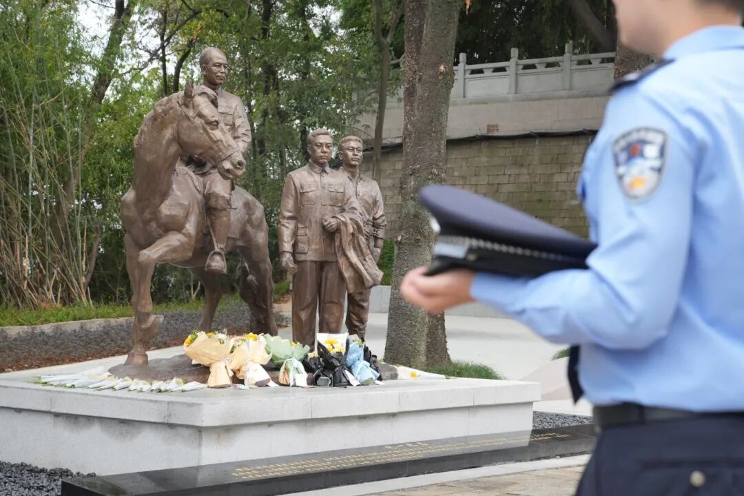 吴红女士在发言中哽咽道:“先辈们甘隐姓名于黑暗,以生命照亮民族前路,今日祖国山河无恙,便是对他们最好的告慰。”祭奠仪式结束后,干警与家属缓步绕行雕塑,献上鲜花,驻足凝视间,仿佛与历史中的坚毅目光再次交汇。