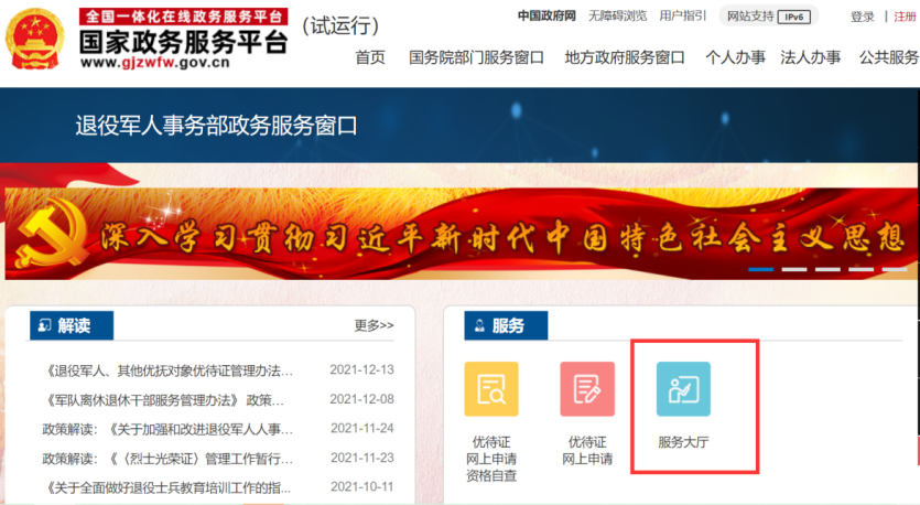 网址:http://mva.gjzwfw.gov.cn/(通过国家政务服务平台——退役军人事务部政务服务窗口——服务大厅模块登陆)。