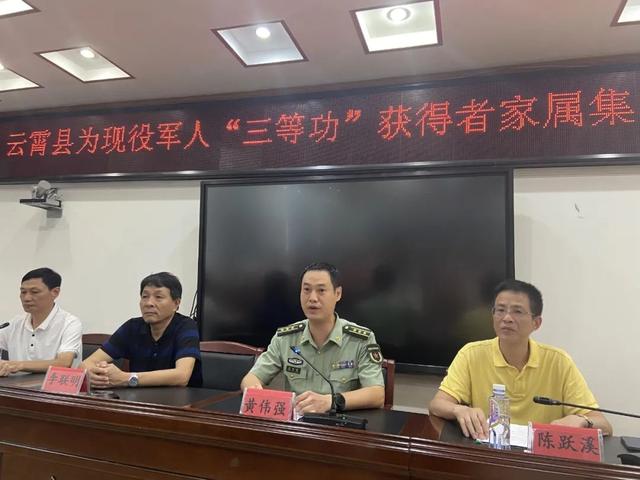 县委常委、县武装部长黄伟强向立功军人家属表达节日最真切的问候。