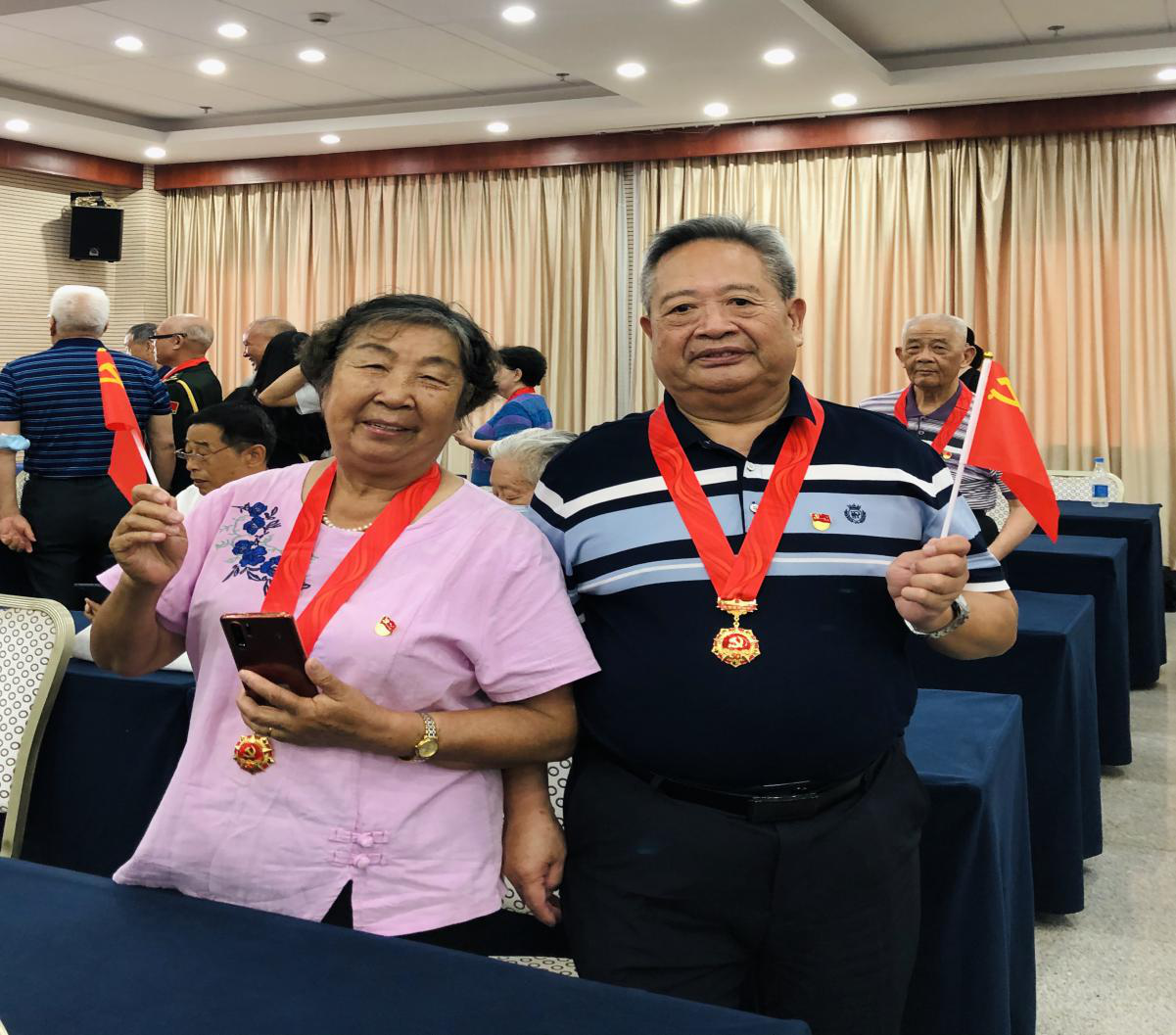 军休老党员伉俪合影