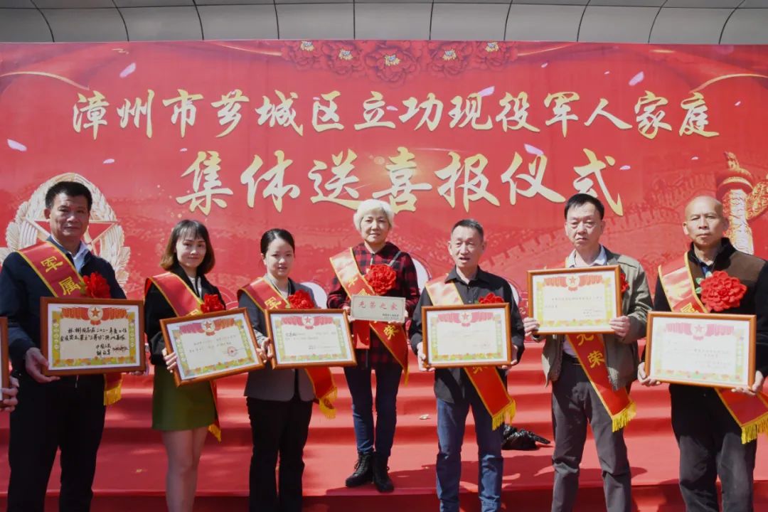 清明后的漳州天气格外晴朗。为弘扬爱国拥军光荣传统,激发芗城籍现役军人安心服役、建功军营的热情,4月8日上午,芗城区举行为立功受奖现役军人家庭集中送喜报仪式。