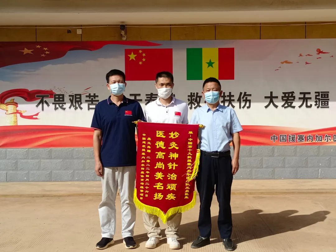 日前,普外科医生已与塞方同行携手完成了胆道闭锁、腹腔巨大肿块、左乳腺巨大占位等多起比较典型的手术。麻醉科医生医教并行,其行云流水的麻醉技术,护航复杂的外科手术,受到国外同行的高度认可。针灸推拿科医生用小小银针传播中国文化,开展中医小儿捏脊疗法治疗小儿消化不良,展示中医魅力。队员们倾力为我驻塞大使馆工作人员、中资企业员工和在塞华人华侨服务,为他们解除了许许多多的疾痛。一位中国企业员工因面瘫找到医疗队,中医师用针灸治好了他的疾病,这位员工特地从国内寄来了一面锦旗,表达对医疗队深深的谢意。有的队员还曾在一天之内收到两封感谢信。