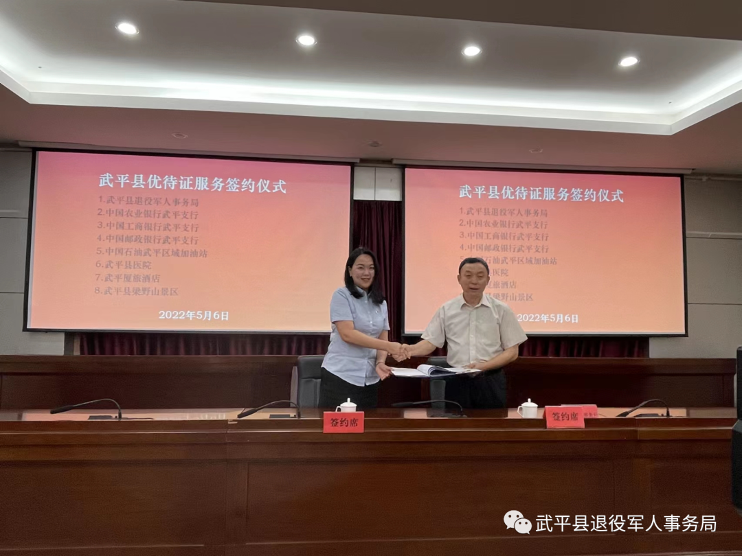 武平县医院、中国石油、梁野山景区、武平厦旅酒店、武平中影世纪东方影城以及县农业银行、邮储银行、工商银行等一大批企事业单位在武平县率先制定了“优待证”具体优待政策。具体如下: