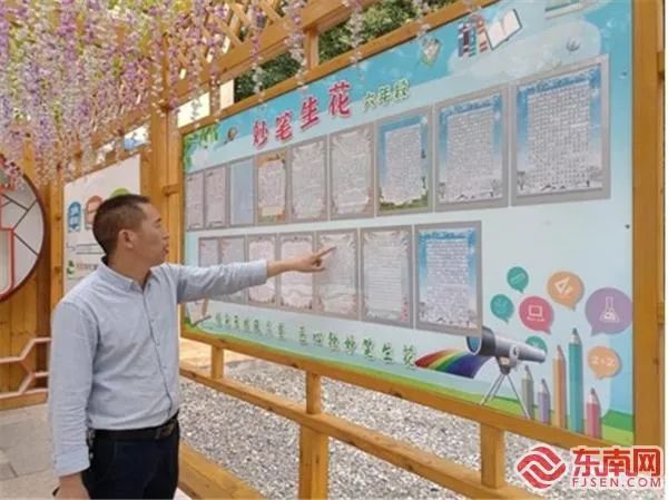 △梅仙中心小学副校长张能足介绍学校爱国主义教育开展情况 王琨 摄