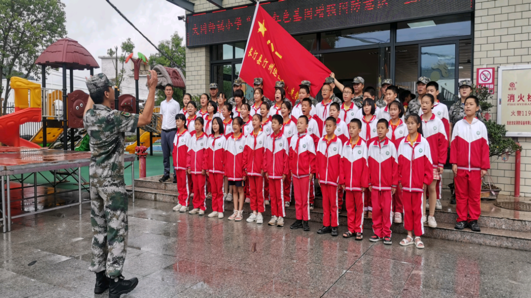 为了满足学生们跃跃欲试的“兵瘾”,教官对高年级学生开展了队列训练。稍息、立正、跨立、敬礼、礼毕……一张张认真的脸庞满溢着朝气,训练以教官带领孩子们齐唱“强军战歌”圆满结束。