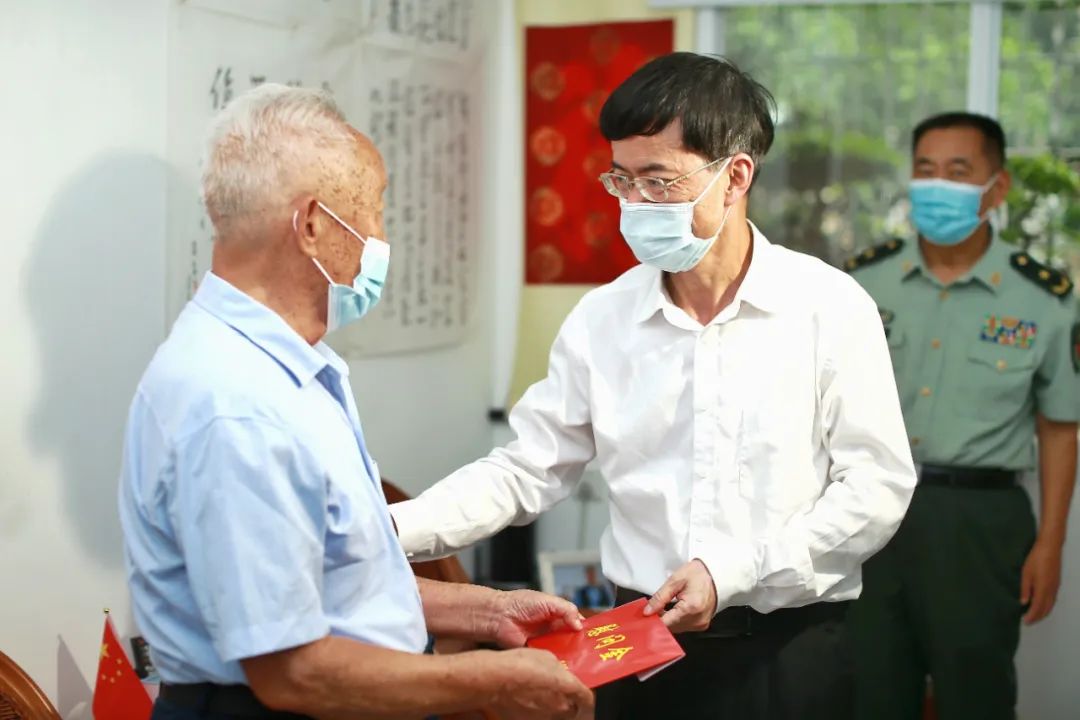 在中国人民解放军建军95周年即将到来之际,7月14日至15日,退役军人事务部党组书记、部长裴金佳带队到厦门调研。在看望老复员军人龚泰章时,裴金佳详细询问其家庭生活和身体健康情况,十分肯定龚老到社区、学校和其他单位宣讲的做法,希望他在身体许可的情况下,通过参加宣传宣讲等方式,教育引导下一代继续传承和弘扬红色基因。