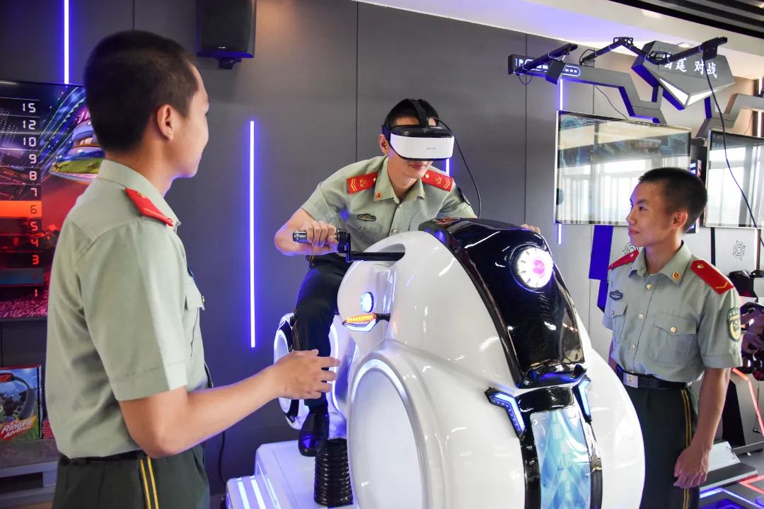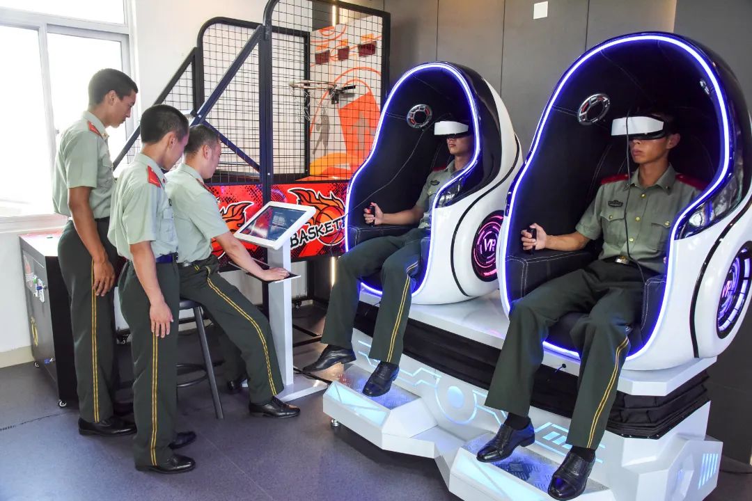 “双人VR游戏平台、万向体感机、VR电影椅、体感游戏机、VR一体机……”走进电子游艺区,官兵们通过各类VR平台充分互动,身临其境体验空间的旋转、跳跃,领略虚拟世界的无限魅力。