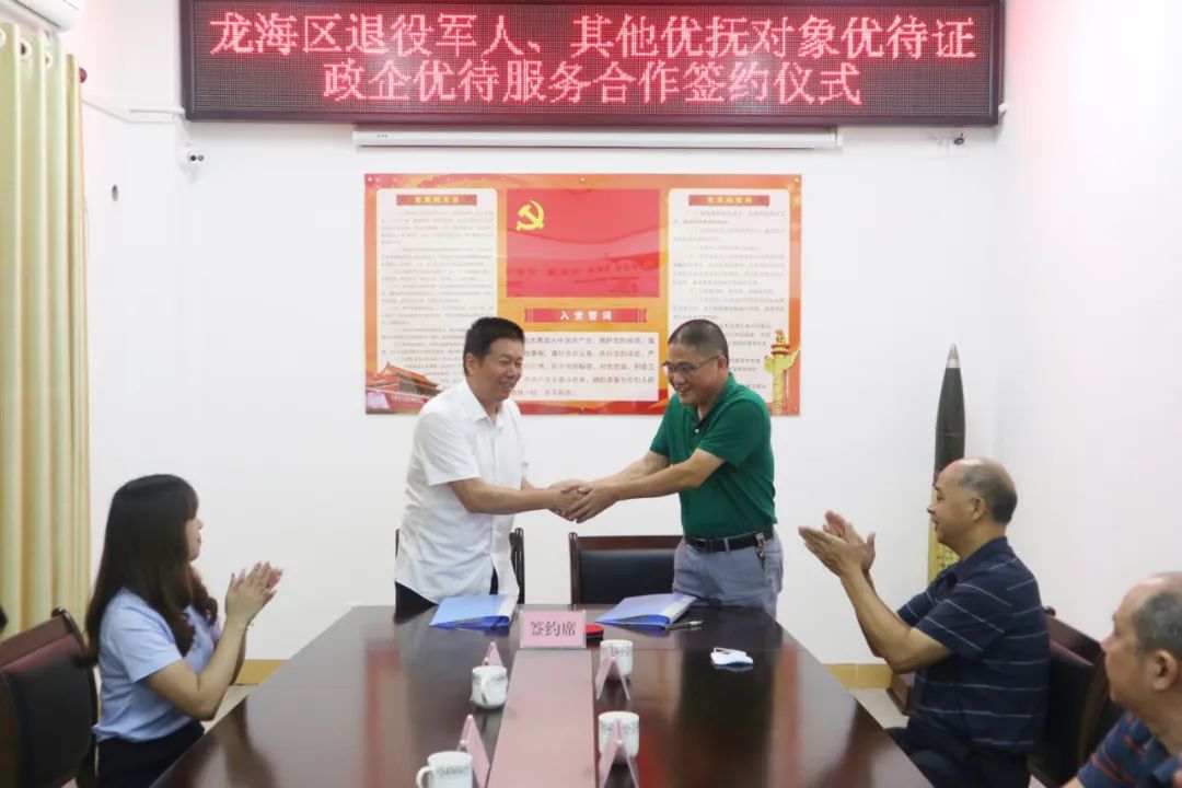 日前,漳州市首个县级退役军人养老协议在龙海区退役军人事务局签约,龙海区和睦老年公寓成为首个签约企业,这也是龙海区第二次组织退役军人优待项目签约仪式,彰显了龙海区企业拥军情怀和责任担当。