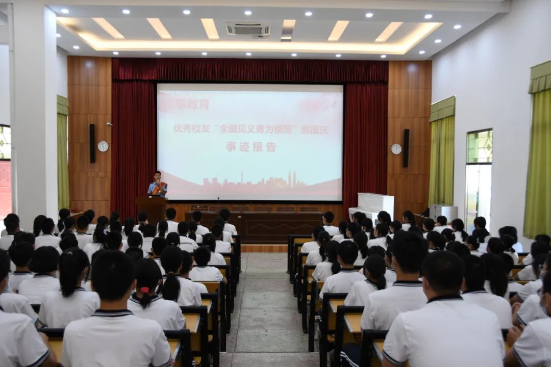 在现场,各个校方代表、两名贫困生的班主任代表接受了捐赠。仪式结束后,颜国庆来到漳州五中、漳州市语堂小学,宣讲红色故事、分享成长经历;他告诉孩子们,得到要感恩、获得要分享、学到要传承。颜国庆说:“大家都说我是英雄,但我觉得自己不是什么英雄,只是一名人民子弟兵。”他还寄语学生们在红色基因的传承下,担当起富国强军、教育强国的重任,为实现中华民族伟大复兴中国梦而努力学习。