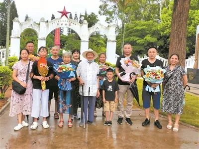 ▲秦凯烈士女儿秦秋香(前排左三)一家三代12人前往东山烈士陵园祭奠。