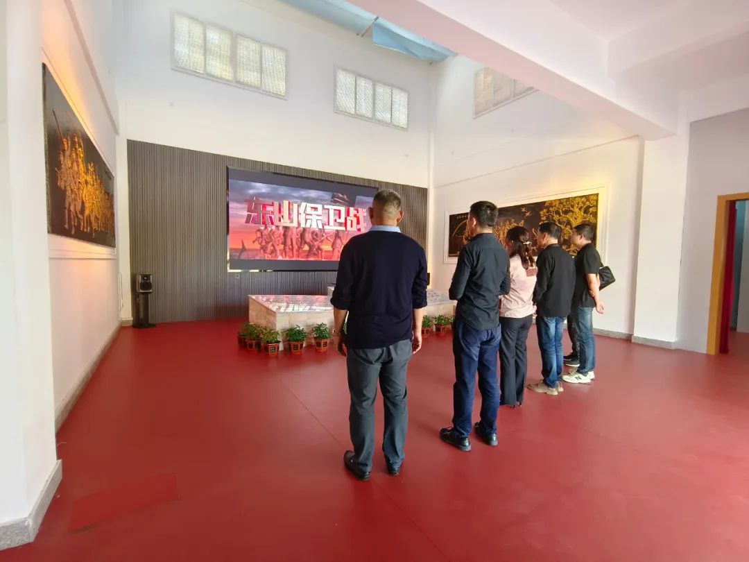 参观学习中,唐清一行先后瞻仰了东山战斗烈士纪念碑、公安八0团、第三野战军墓区,共同缅怀烈士,并在阜阳籍烈士范孟生、邵传尧墓前献上鲜花、鞠躬默哀。随后,在东山战斗纪念馆观看东山保卫战纪录片,听取该馆负责人蔡东成的情况介绍。