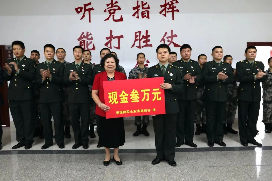 2022年9月,公勤队战士余良钦亲属身患重病,仅两个月在医院治疗就花费30余万元。父母均为农民且年近花甲,家庭的生活重担全部压在他一人身上。爱国拥军企业家施丽容了解情况后,第一时间来到部队,主动捐赠3万元用于缓解余良钦家庭因病带来的生活困难。