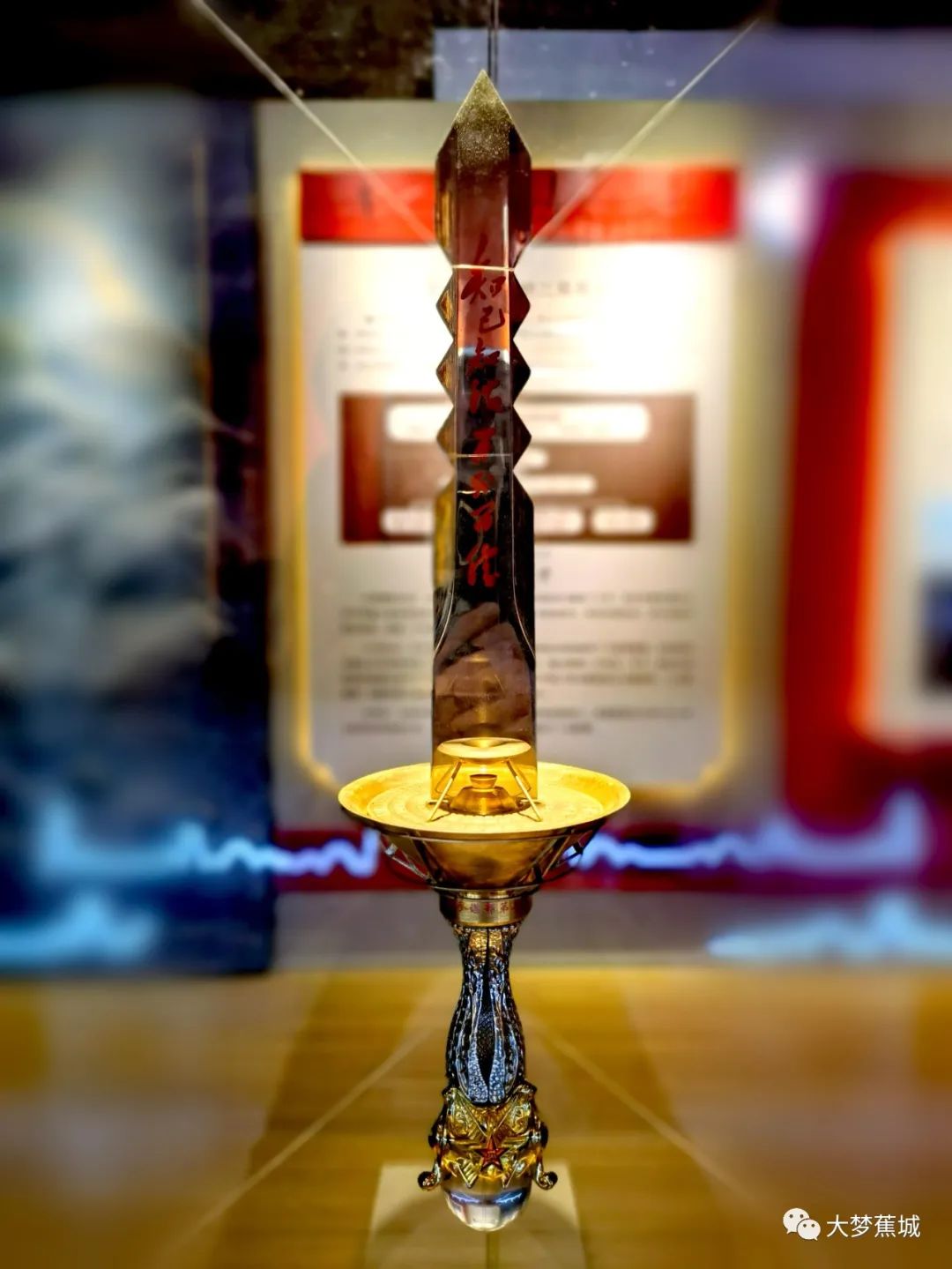 蔡威事迹展陈馆里有一把剑,只见它周身透明,若有若无,似剑非剑,毛泽东主席手书的“知己知彼,百战百胜”八个字镌刻在最中央,其寓意不言而喻。造型设计别致巧妙,总体造型是一把剑,寓意着刺向敌人心脏的一把利剑;再认真看像把钥匙,寓意着打开敌人核心机密的一把密钥。这就是被喻为中国人民解放军隐形方面军部队的部标一一隐形利剑。