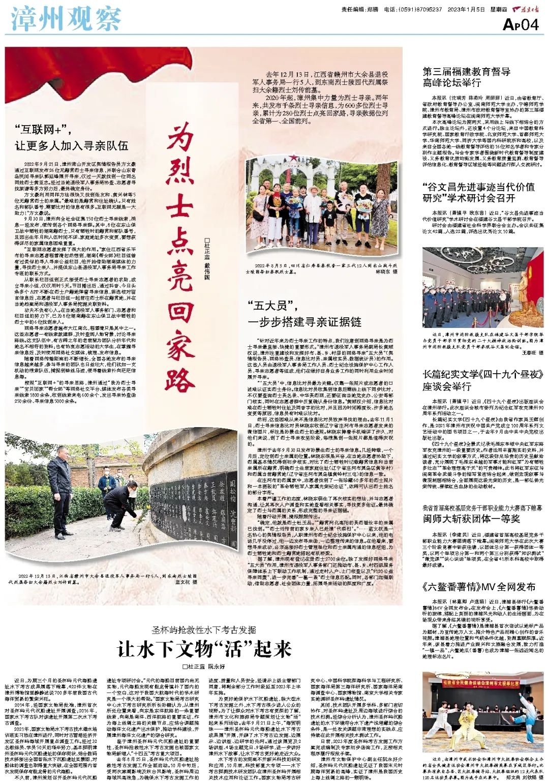 2020年起,漳州集中力量为烈士寻亲。两年来,共发布千条烈士寻亲信息,为600多位烈士寻亲,累计为280位烈士点亮回家路,寻亲数据位列全省第一、全国前列。
