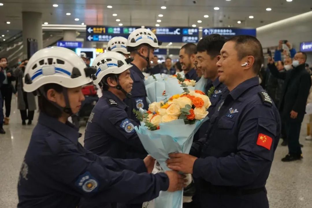 2月19日凌晨,在上海浦东机场,鲜花和掌声将刚刚落地的厦门曙光救援队队员包围。还带着土耳其的尘土,满身疲惫,队员们结束了此次赴土耳其震区救援救灾的任务,平安凯旋。