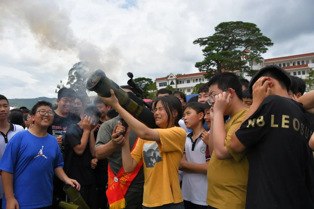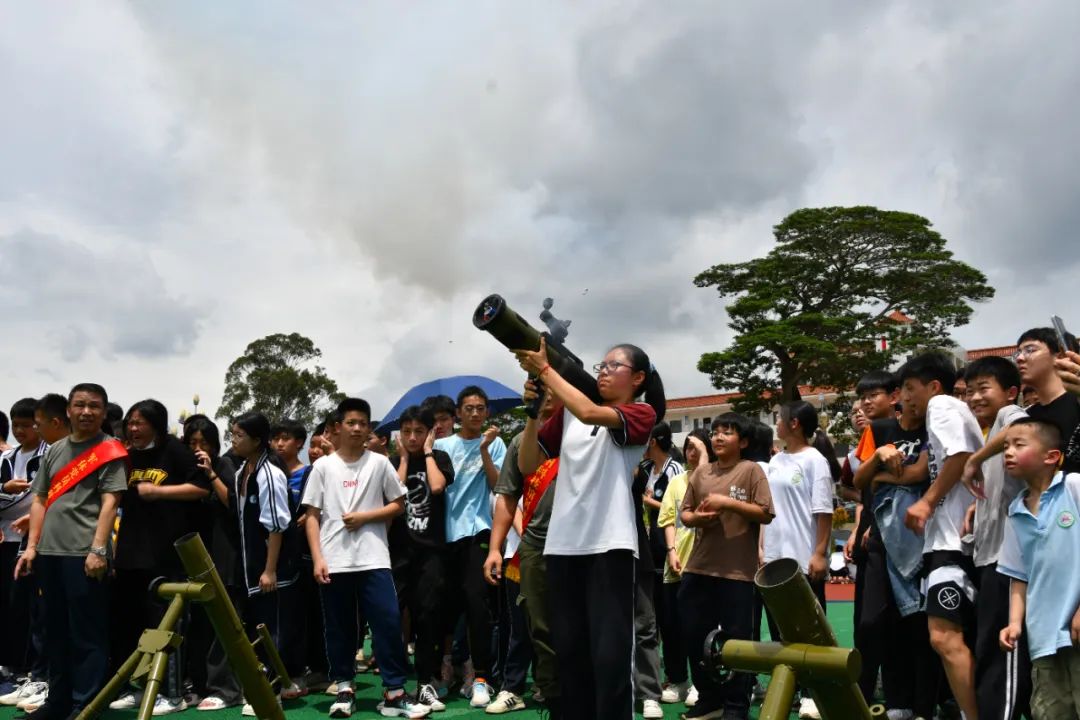 在军事移动体验站,当“轰”的一声巨响响彻操场上空时,学生们掌声雷动。现场还有不少女生巾帼不让须眉,亲自体验“实弹”射击,更多的学生纷纷为只能享受几分钟的体验而感到惋惜。多样的“军”味课程,沉浸式的体验模式,不仅激发了学生热爱祖国、崇军尚武的热情,也树立起民族团结一家亲的优良传统。