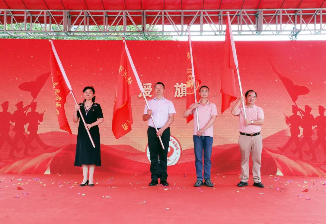 揭牌仪式上,福州市退役军人关爱协会为市退役军人理论宣讲团、退役军人志愿者医疗服务队、退役军人艺术团、退役军人书画院授旗,为新入会单位授牌。