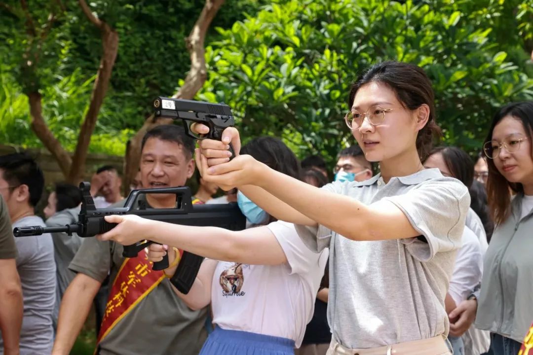 “砰”,只听一声巨响,一条火龙吐向空中,中心干部郑巧美第一次体验火箭筒“实弹射击”十分激动。她说:“没想到在机关也能体验到军事装备射击,即充实又激动,还近距离了解了最新的军事装备性能,切身地感受到国防力量的强大。”