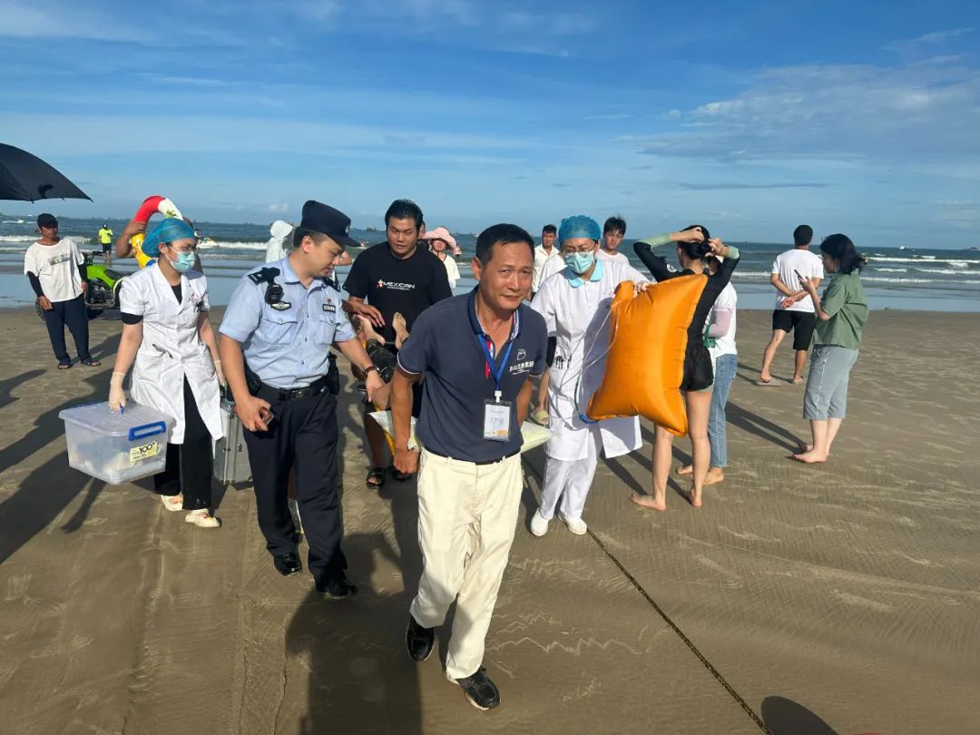 “当时,两眼昏暗,全身无力,救生圈给那少年时,我都感觉快不行了。”事后,陈添平说,上岸后,看着溺水少年昏迷的样子,他示意再无力气救人了,只能转身向周围群众寻求帮助。幸好此时一名30岁左右的外地游客经过,得知情况后,快速展开急救,最终帮助少年将肺里的水吐出来。