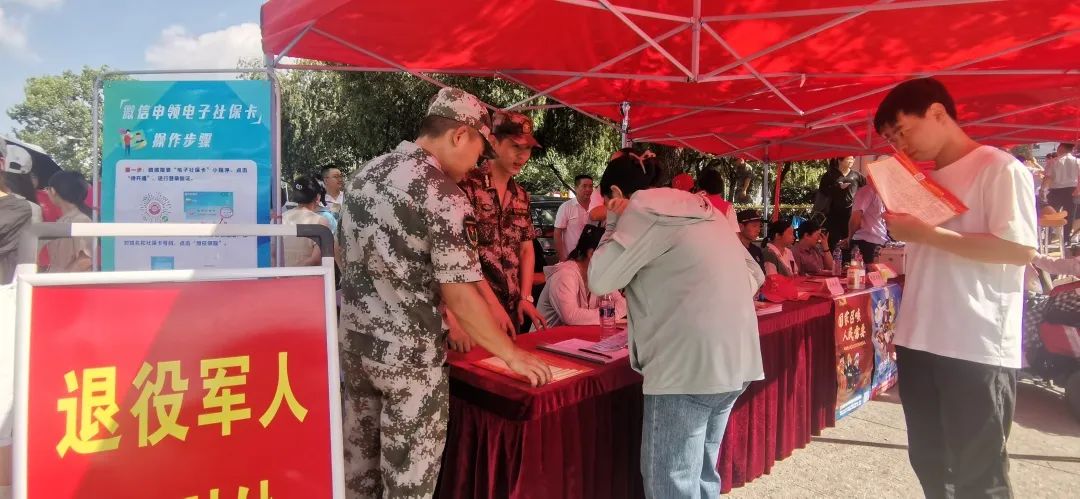在退役军人政策咨询和政策宣传专区,长汀县退役军人事务局工作人员和汀州退役军人先锋大队队员们热情提供政策咨询、职业指导、岗位推介等服务,并发放《中华人民共和国退役军人保障法》宣传册及退役军人相关政策资料。
